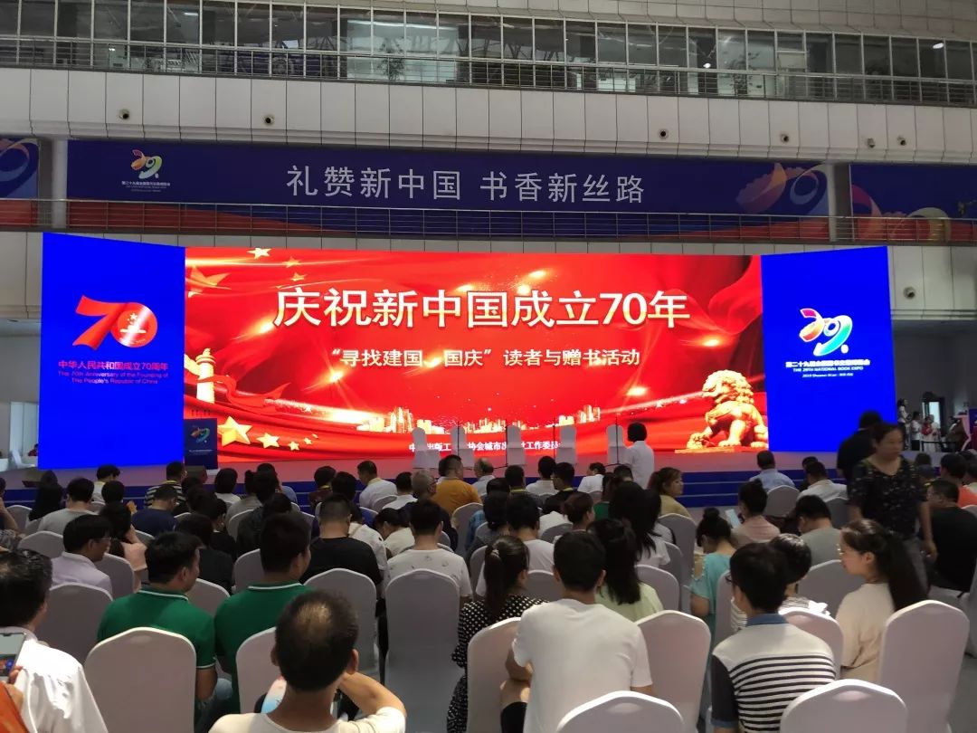 7月28日,在组委会指导下,中国出版工作者协会城市出版社工作委员会16家出版社联合策划组织的“庆祝新中国成立70年‘寻找建国、国庆’与赠书活动”在西安举办,旨在寻找、记录“建国”“国庆”人名背后的故事,礼赞中华人民共和国成立70年。